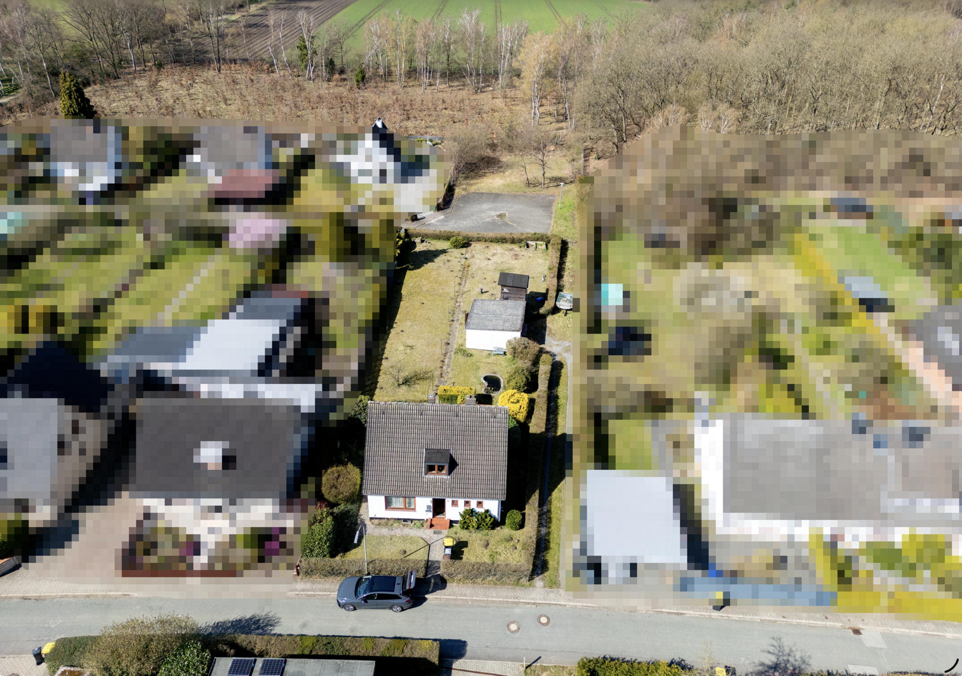 Aktuell ist das Grundstück mit einer Bestandsimmobilie aus den 1950er-Jahren bebaut, die sich in einem renovierungsbedürftigen Zustand befindet. Dadurch eröffnen sich sowohl Möglichkeiten zur Sanierung als auch zur Neubebauung.