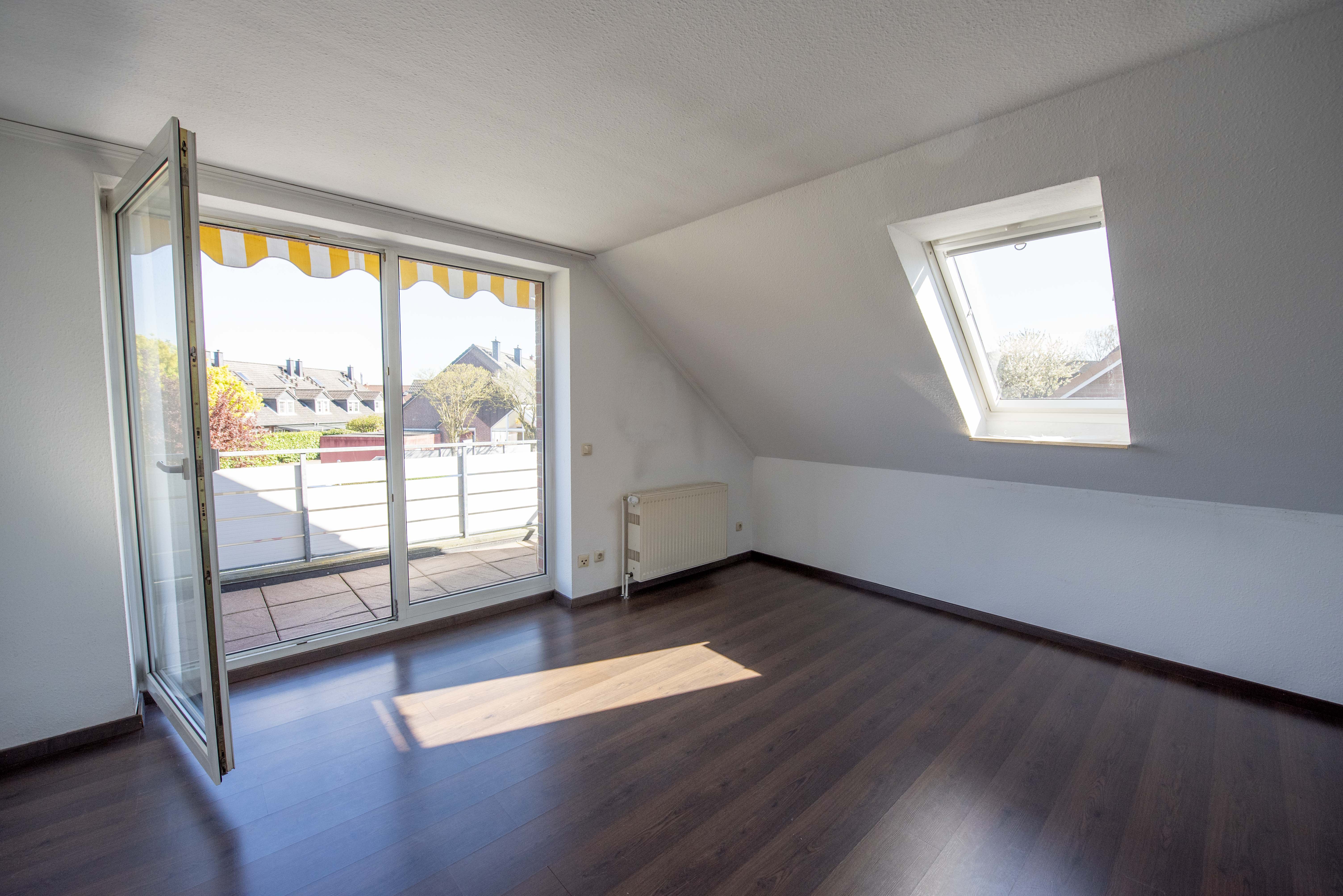 Das Badezimmer überzeugt mit Badewanne, Dusche und Tageslicht. Das Schlafzimmer mit angrenzendem Ankleidezimmer schafft zusätzlichen Komfort. Über eine Bodenluke gelangen Sie zum großen, eigenen Dachboden – ein echtes Plus an Stauraum.
