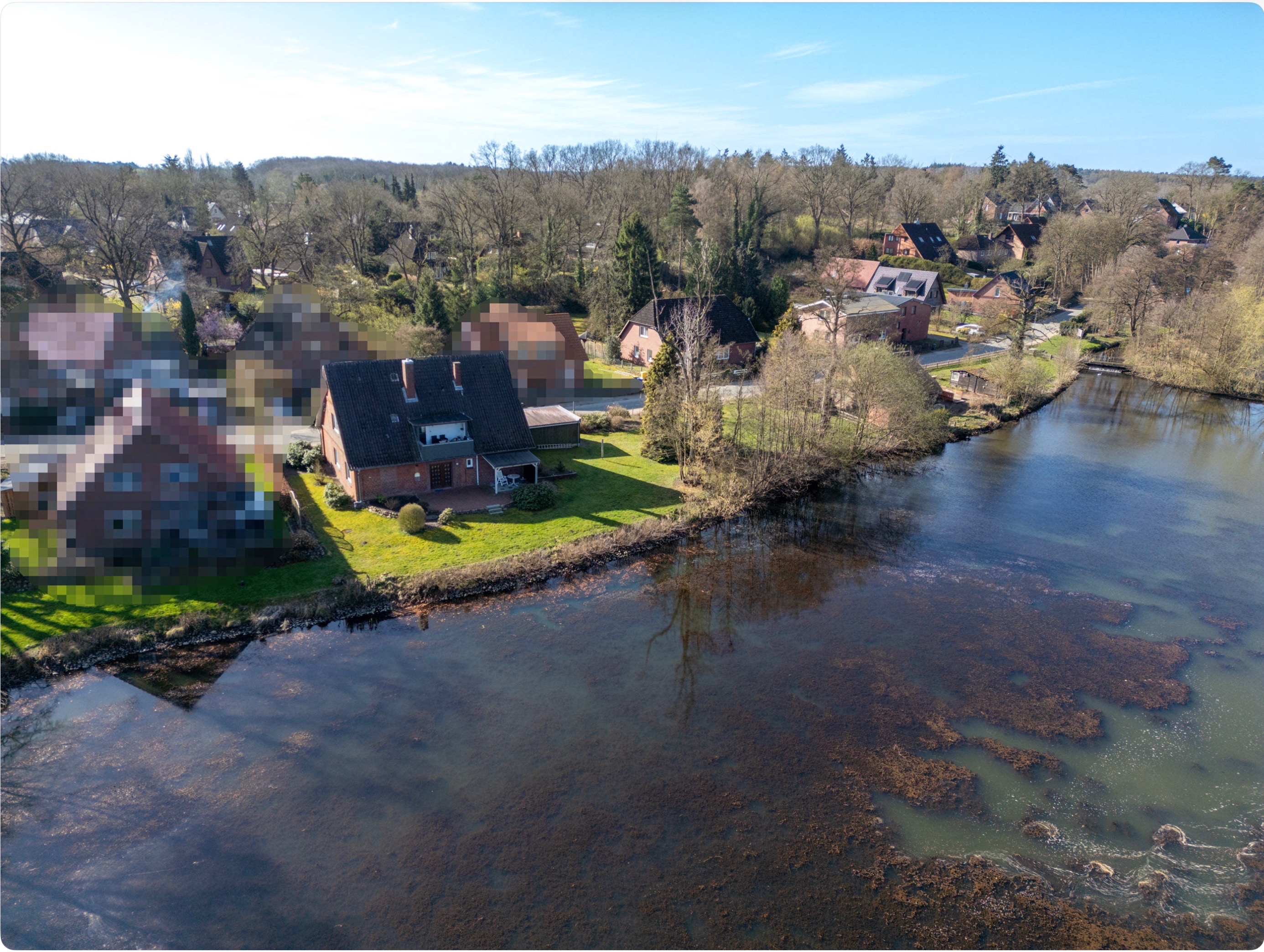 Dieses außergewöhnliche Zweifamilienhaus im Ortsteil Ashausen überzeugt durch seine einmalige Lage direkt am Wasser sowie durch eine großzügige Wohnfläche von ca. 242 m², verteilt auf zwei abgeschlossene Wohneinheiten.